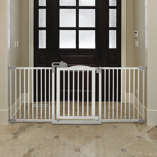 Richell's One-Touch Gate II Wide is a tension mount gate designed to fit a wider selection of doorways, from 32.1-62.8" without damaging wall surfaces. The door handle allows you to open the wooden door in either direction with the touch of one button! One-Touch II Wide comes in Autumn Matte or Origami White to complement your home.